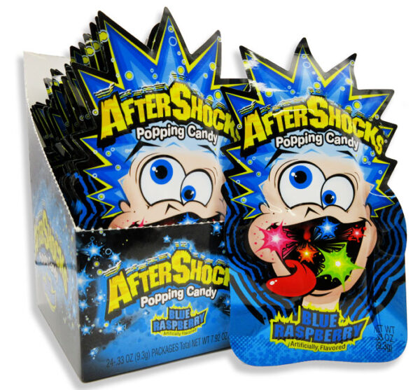AFTERSHOCKS POPPING CANDY BLUE RASPBERRY IN DISPLAY