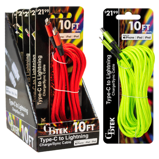 CBTEK Type-C to Lightning 10-Foot Nylon Cable 5 units per display