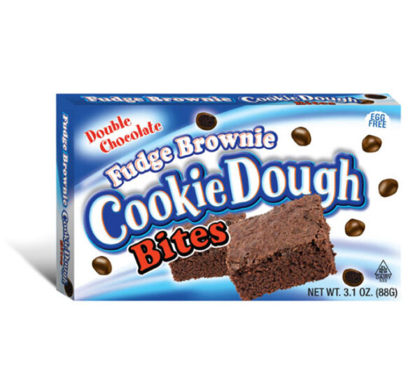 Sweet, fudgey brownie pieces are coated in chocolate for a bite sized snack perfectly packaged for a movie theater snack.