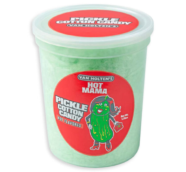 Fairytale Cotton Candy partnered with Van Holten, a family owned company founded in 1898 to create this fluffy, sweet cotton candy from the fan favorite bolt tasting pickle flavor of Hot Mama Pickles. These cotton candies will set your tongues wagging.