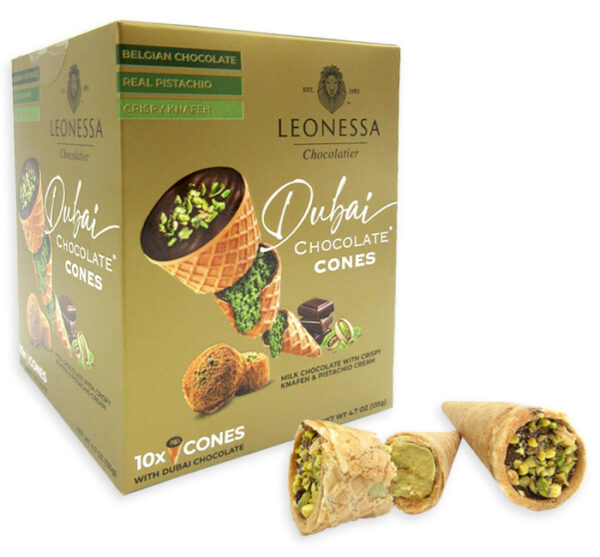 DUBAI CHOCOLATE CONES – LEONESSA (INDIVIDUALLY WRAPPED) pack of 12