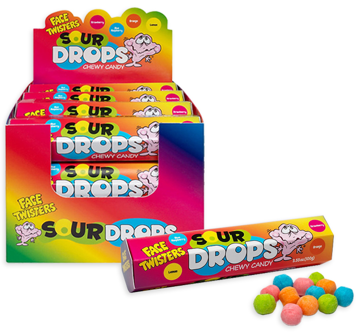 FACE TWISTERS SOUR DROPS CHEWY CANDY – IN A DISPLAY 12 units per case