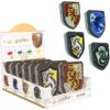 Harry Potter Crest Tin assortment. This assortment of tins includes each of the tins that represent each of the house. Each house tin also has a specific flavor of jelly bean. Flavors include: Gryffindor (very cherry), Hufflepuff (Sunkist lemon), Ravenclaw (blueberry), and Slytherin (green apple). In a display box.