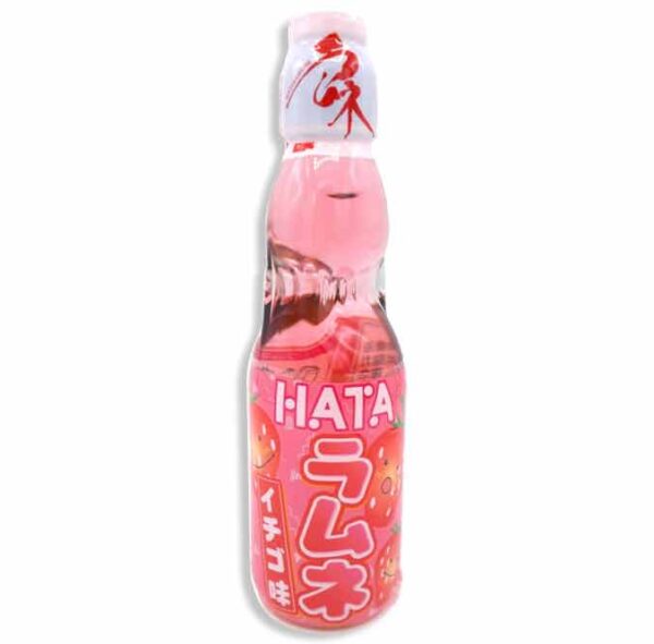 Ramune is a fun and innovative soda from Japan! Sealed with a marble in the top, you remove the plastic cap and use it to push the marble into the top of the bottle. This Hata Strawberry ramune is a fruity and refreshing treat!