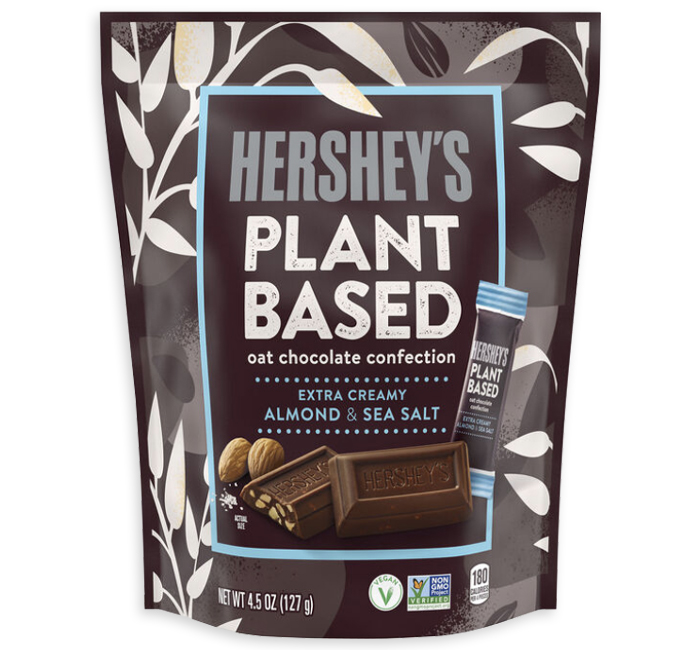 If you want to enjoy a classic but need, or want, the plant based verison, we have you covered. Here is the Oat chocolate confection. Extra creamy Almond & Sea Salt Hershey minis to enjoy.