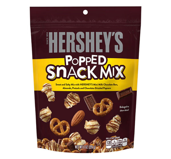 An american staple, Hersheys has made moments of goodness for people around the world with their iconic, beloved brands. So you cant go wrong with peg bag of Hersheys Popped Snack Mix.