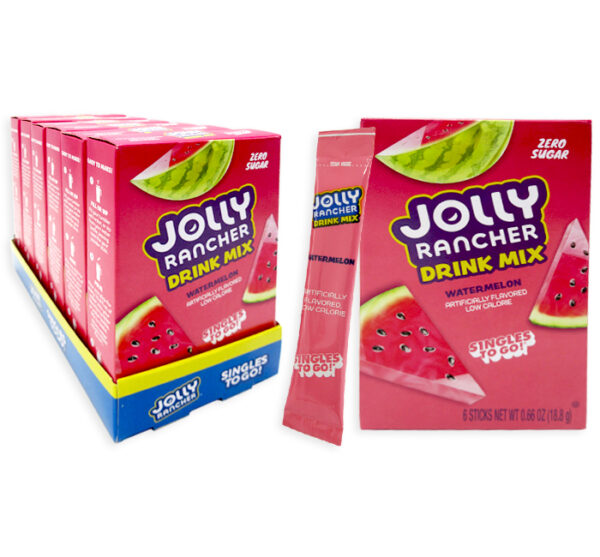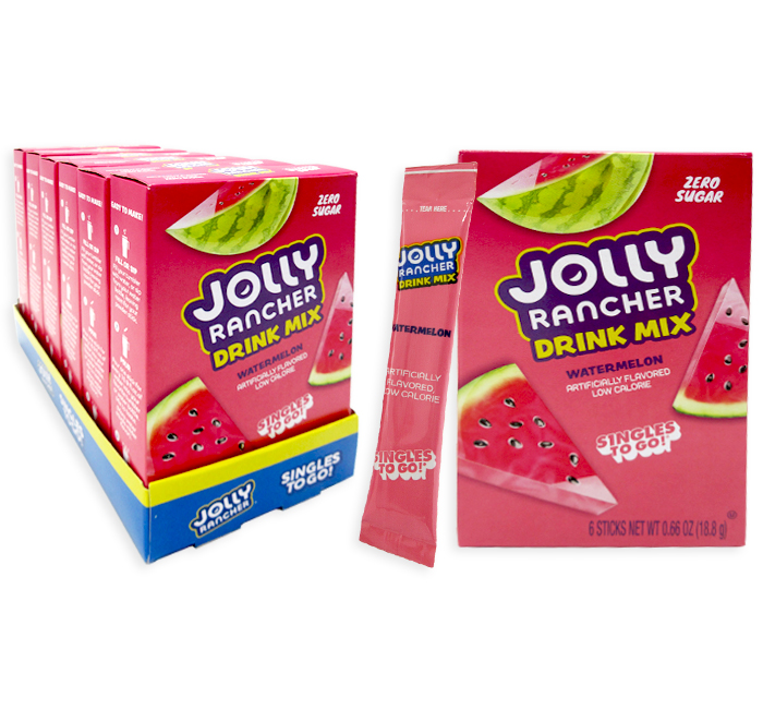 Jolly Rancher To Go Watermelon Drink Mix from Jel Sert delivers a bold, tangy blue raspberry flavor in a convenient, sugar-free powder stick perfect for on-the-go refreshment. This low-calorie, caffeine-free mix easily blends with water for a sweet, thirst-quenching drink thats ideal for any occasion.