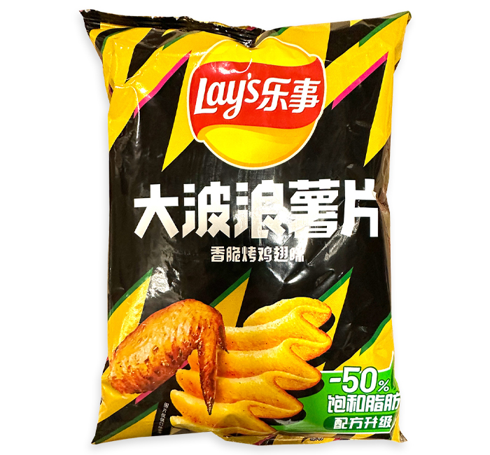 Lays BBQ Chicken Wave Chips from China feature thick, ridged crisps bursting with the smoky, savory flavor of grilled barbecue chicken. Each bite delivers a satisfying crunch and a delicious blend of sweet, tangy, and umami notes reminiscent of a backyard cookout.