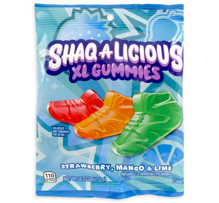An american staple, Hersheys has made moments of goodness for people around the world with their iconic, beloved brands. So you cant go wrong with peg bag of Shaq-A-Licious XL Gummies Sneakers. With flavors like Strawberry, Mango, and Lime flavors; you just cant go wrong.