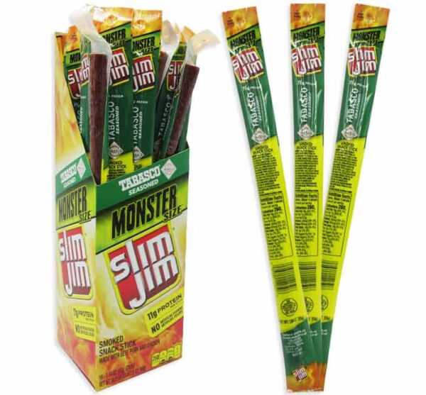 If Slim Jim hit the weights and came back jacked, it would be a Slim Jim Monster. The TABASCO® flavor is a flavor straight out of gator country. Its protein rich with all the bite and kick of Louisianas most famous hot sauce. Pairs well with gumbo or your most primordial instincts to devour meat