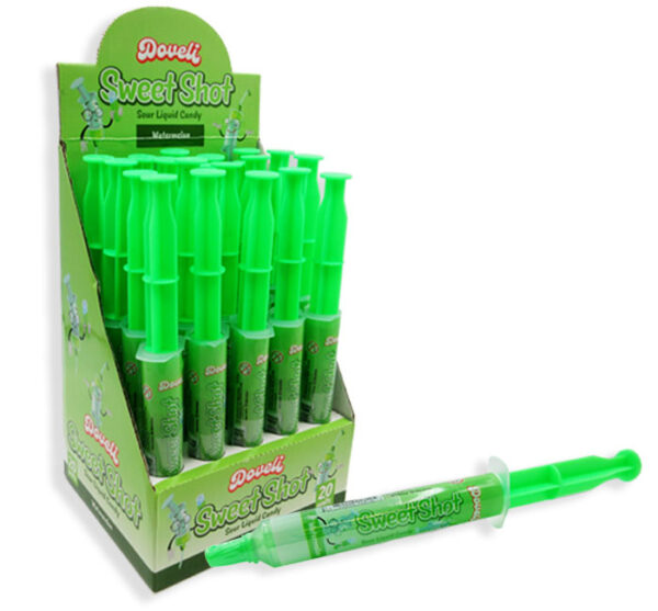 This sour liquid candy in a syringe will give you a shot of sour candy fun. Now in watermelon flavor.