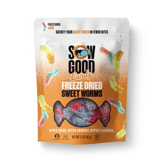 Once gummy, but now crunchy, thanks to the Sow Good freeze drying process! Just sweet enough to satisfy your “sweet” tooth without all the guilt. Our crunchy worms treat is lightweight, flavorful and airy. And because they’re more packed with flavor, expanded in size and last longer, you won’t need as many to satisfy your craving!