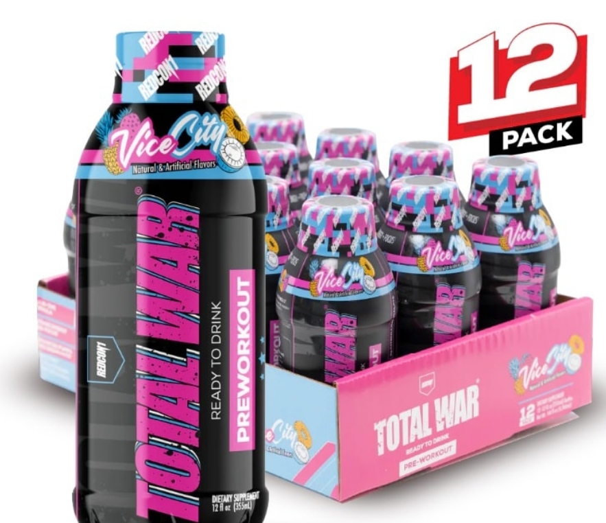 Get ready for an intense workout with Total War Pre Workout! This powerful 12oz formula is designed to boost your energy, endurance, and focus. It contains 350mg of caffeine, which is equivalent to about 3 cups of coffee, as well as 150mg of beta-alanine and 100mg of L-citrulline. These ingredients help you feel more energized and focused during your workout. Total War also includes L-arginine, agmatine sulfate, and N-acetyl L-tyrosine to support muscle growth and recovery. This supplement comes in different flavors and is made by Redcon1.