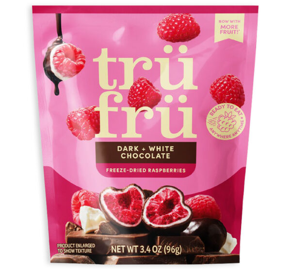 TRU-FRU DRIED FRUIT IN DARK AND WHITE CHOCOLATE – RASPBERRY 6 units per case