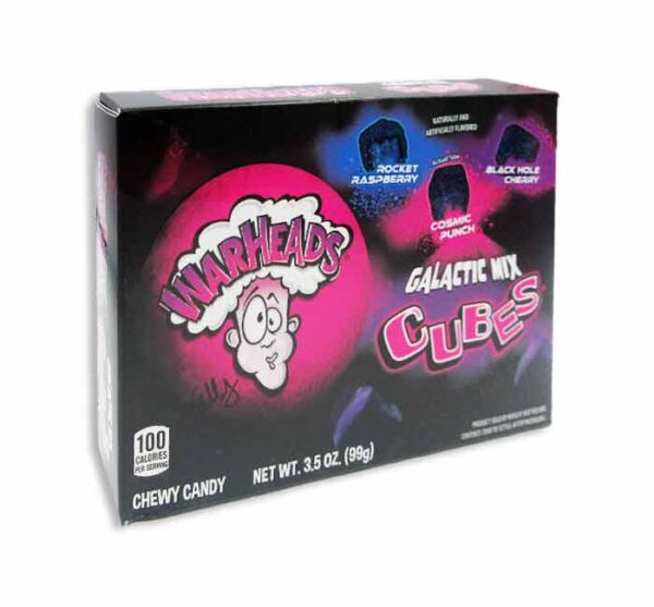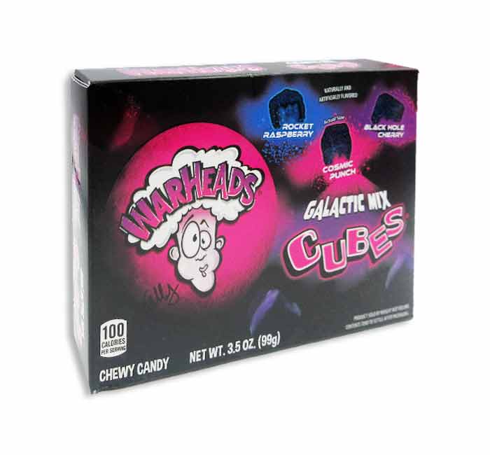 Since 1985 Warheads have set the standard for sour candy. Today its still the candy of choice for the super sour seekers. Now enjoy this Galactix mix of rocket raspberry, cosmic punch, and black hole cherry cubes.