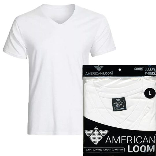 White Large Short Sleeve V-Neck T-Shirts 6 Units Per Pack