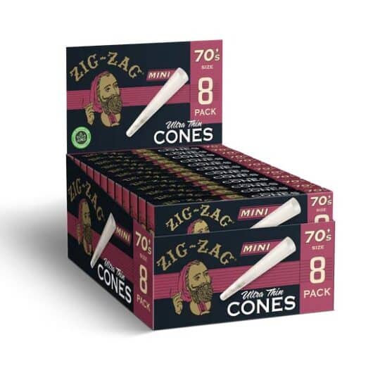 Be the first to review “Zig-Zag 70mm Minis Ultra Thin 8pk Cones 18 units per display”